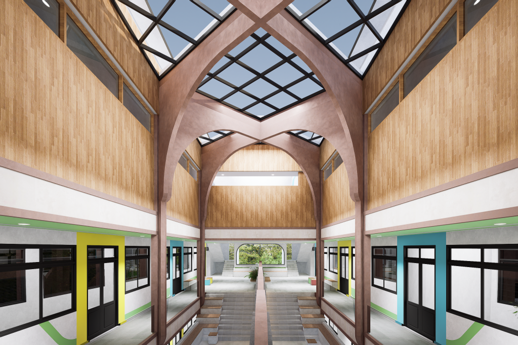 Gedung yang membuat anak-anak merasa senang dan nyaman. Gedung terintegrasi meliputi area pendidikan, ibadah, asrama dan berbagai aktivitas.
